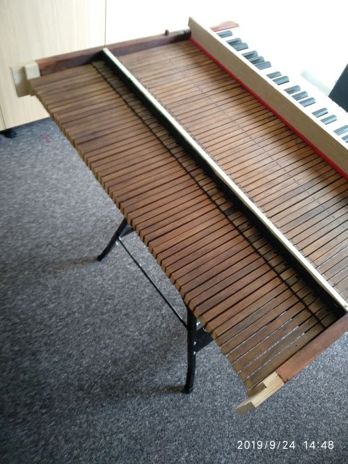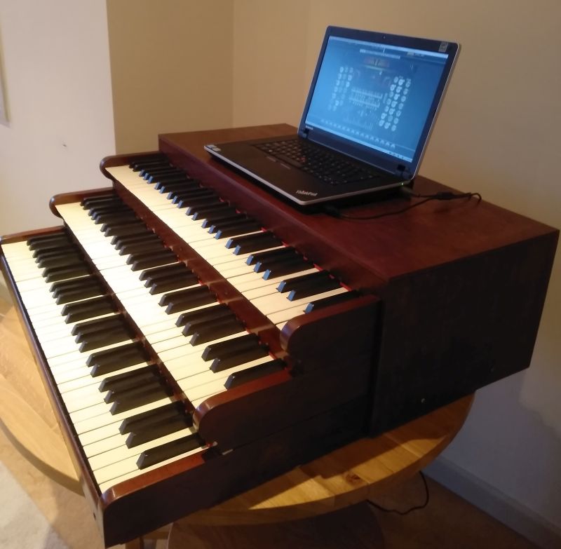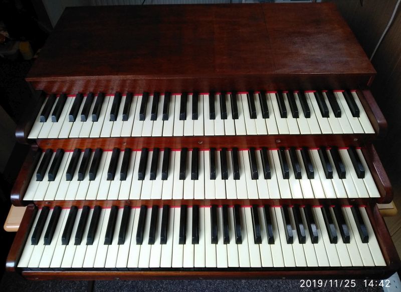 The keystack has been cleaned and repaired and converted for use as the basis of a MIDI organ. This involved several stages: