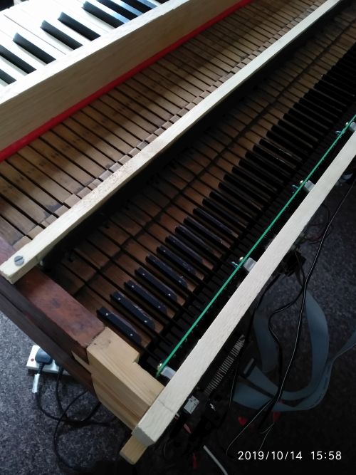 The frames now completely enclose the keys and provide support for the MIDI electronics.